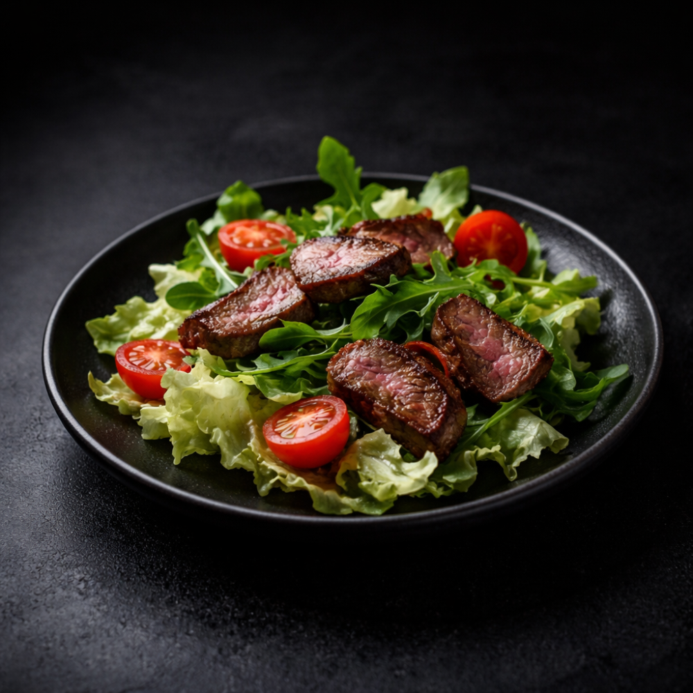 Теплый салат с ростбифом и рукколой